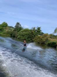 Kneeboard auf diesem man kniet und auf den Hacken sitzend gezogen wird.